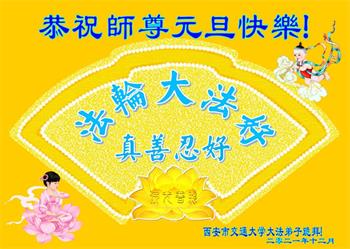 感谢师尊对弟子及家人的救度之恩! 尊敬的师父好!师父辛苦了! 陕西省西安市交通大学大法弟子恭祝师尊元旦快乐!