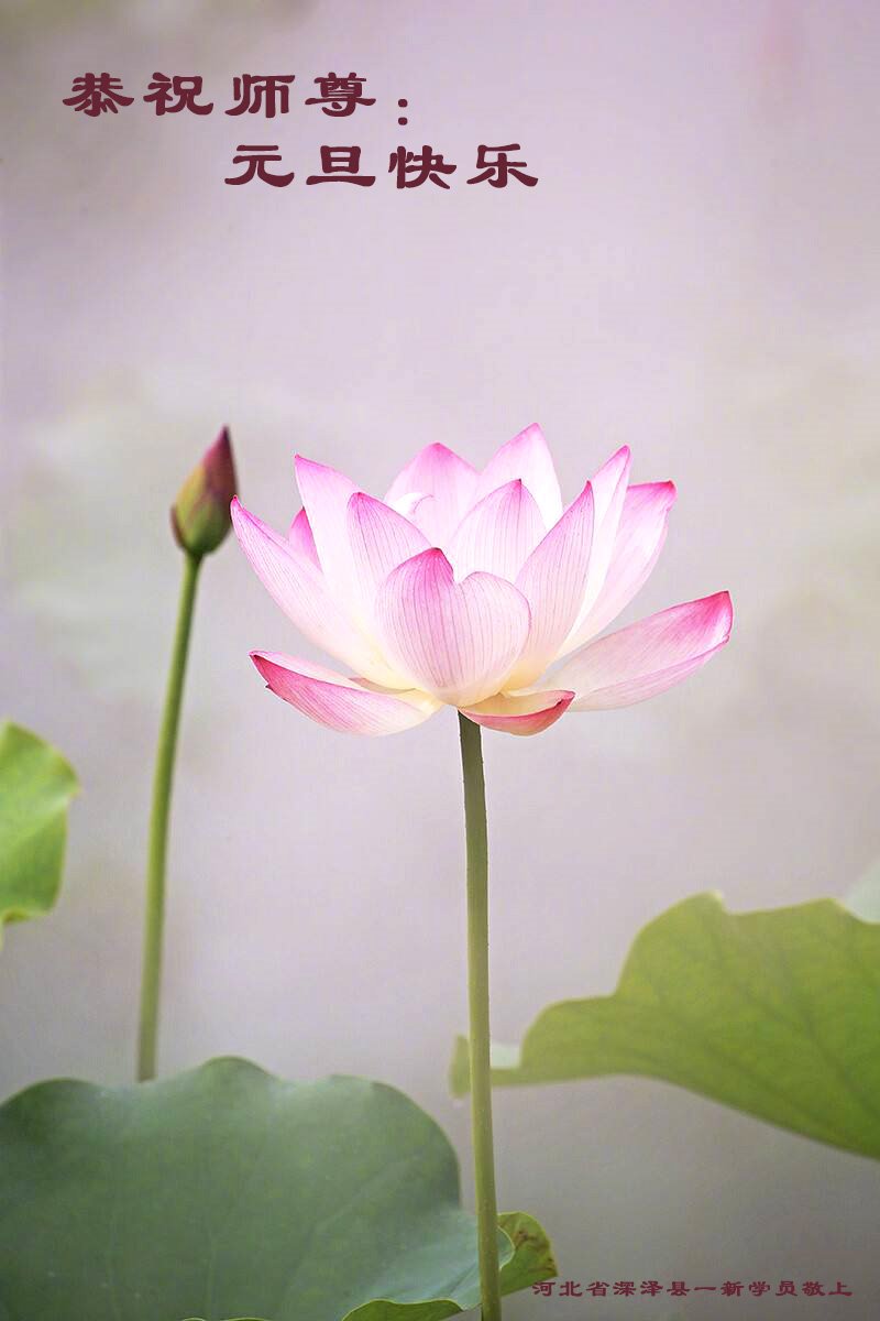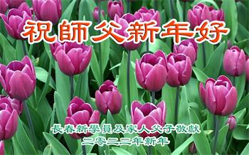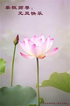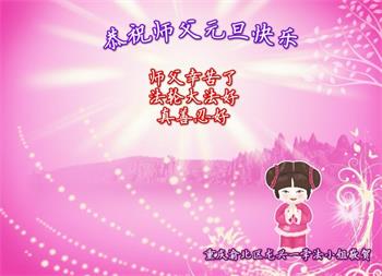 在这新年到来之际,弟子以真诚之心祝师尊新年快乐!在这险恶的人间是您的保护,使我走到了今天。在这十五年里我摔了跟头,是师尊把我扶起,鼓励我继续前行。感恩师尊!弟子在今后的日子里修去自己一切不符合法的地方,在法中归正。静心学法,事事对照,一切按师尊的安排走正以后的路。同化大法,做法粒子,兑现自己的誓约。