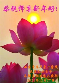 辽宁省大连市全家十名大法弟子及明真相的家人恭祝慈悲伟大的师尊新年快乐! 二零二一年十二月二十七日 河北省保定地区农村明真相、坚信法轮大法好的一民众问候大法师父新年快乐!