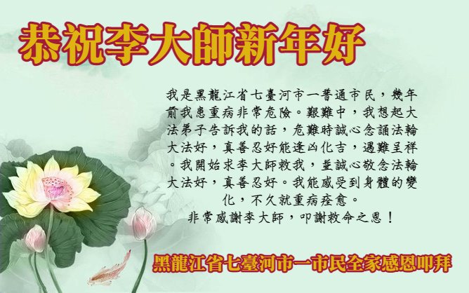恭祝李大师新年好! 黑龙江省七台河市一市民全家感恩叩拜! 黑龙江省七台河市明白真相的全体市民恭祝李大师新年好!