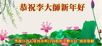 我们是明真相的保定地区农村的民众,我们代表全家人向法轮大法师父敬贺新年快乐! 黑龙江省佳木斯明真相王女士代全家恭祝李大师新年快乐!