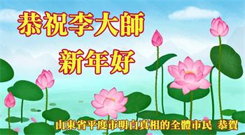 恭祝李大师新年好 山东省平度市明白真相的民众恭贺 山东潍坊大法弟子及全家15人及明白真相的亲属几十位祝师父新年快乐!