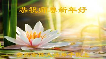 师父您好!师父辛苦了!弟子叩拜师父!弟子一定听师父的话,多学法,修好自己 ,兑现誓约,救度更多众生。不负恩师期望。 贵州省贵阳市一学法小组全体大法弟子恭祝慈悲伟大的师尊新年快乐!