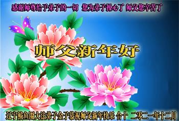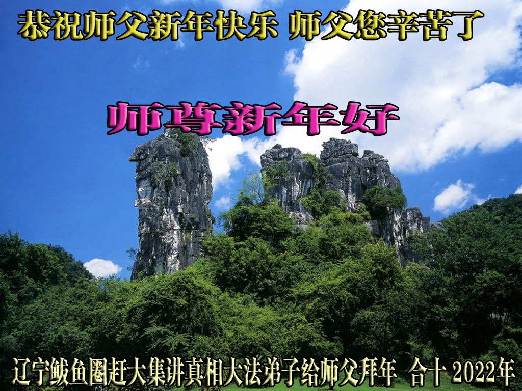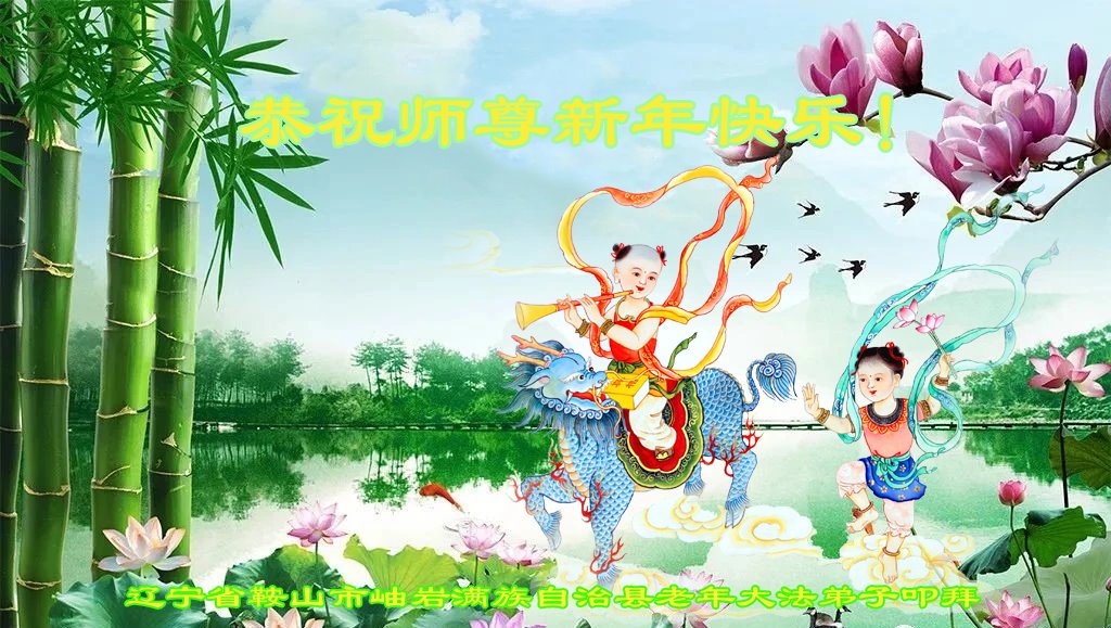 恭祝师尊新年快乐! 师父辛苦了,弟子一定不辜负师尊的厚望,修好自己,多救人,做一个合格的大法弟子,跟师尊回家。 辽宁省鞍山市岫岩满族自治县中年大法弟子叩拜 辽宁省抚顺市一名大法弟子恭祝师尊新年快乐!