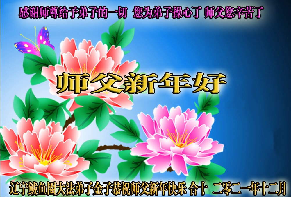感谢师父对弟子及家人的保护,师父您辛苦了!辽宁鲅鱼圈大法弟子的家人恭祝师父新年快乐! 辽宁鲅鱼圈大法弟子的家人恭祝师父新年快乐!