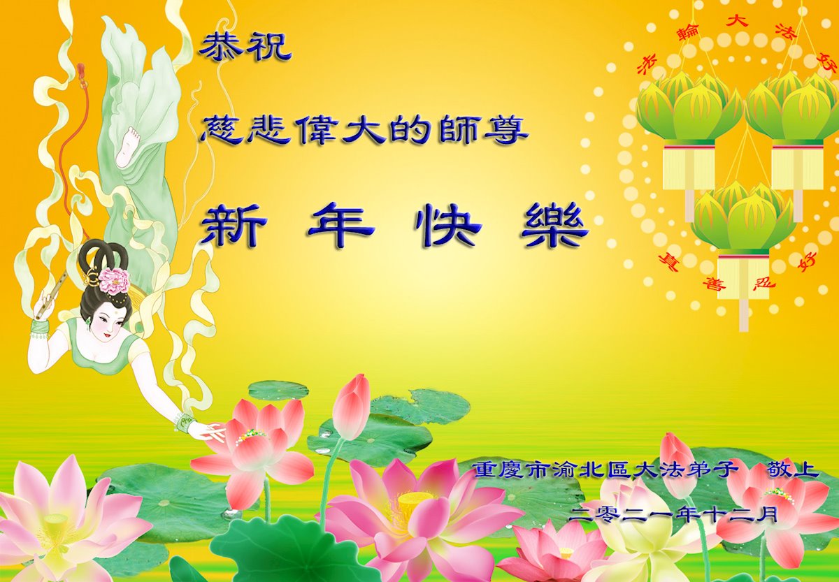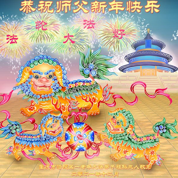 【明慧网二零二一年十二月三十一日】 重庆市渝北区大法弟子恭祝慈悲伟大的师尊新年快乐!