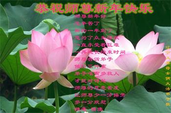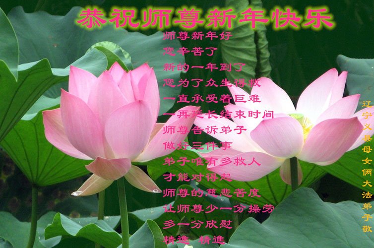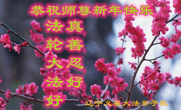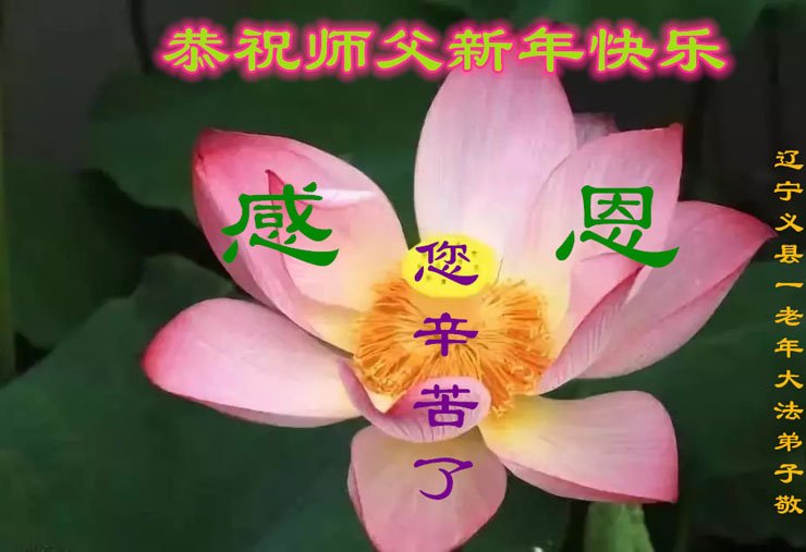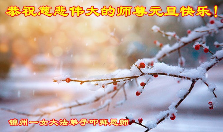 师尊新年好!在新年即将来临之际,弟子更加想念师尊,感恩师尊慈悲苦度!一定不辜负师尊对弟子的希望。在新的一年里,一定要做好三件事,精進实修,完成好救度众生的使命!圆满随师还。合十 辽宁锦州大法弟子恭祝师尊新年好!新年快乐!法轮大法好!真善忍好!