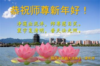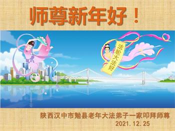 陕西勉县老年大法弟子一家向师尊叩拜,恭祝慈悲伟大的师尊新年好! 陕西省延安大法弟子恭祝慈悲伟大的师尊新年快乐!