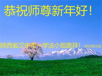 感恩师尊慈悲救度! 陕西省汉中市一学法小组全体大法弟子恭祝师父新年快乐!