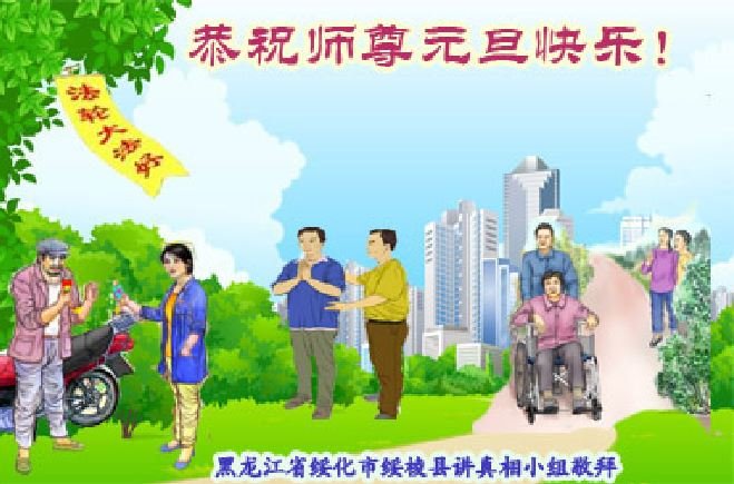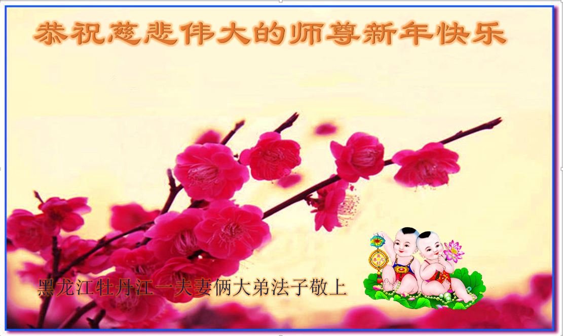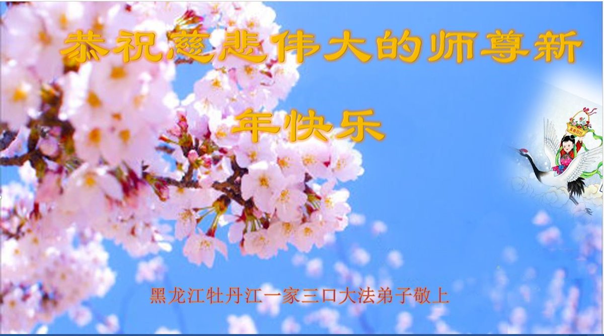 师父新年好,感谢师父的多次救命之恩!我会努力提高心性,修好自己,回报师恩。 黑龙江省牡丹江市阳明区一大法弟子及其不修炼的女儿和妻子恭祝师父新年快乐!