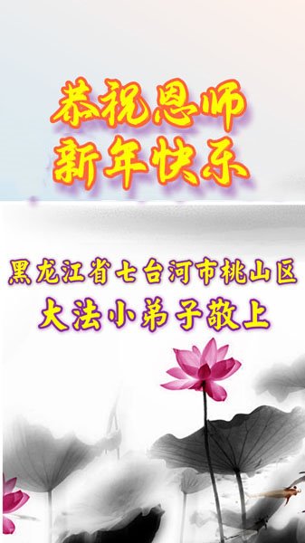 师父新年好!新年快乐!法轮大法好!真善忍好!感恩师父的慈悲救度!弟子们一定牢记师尊教诲,完成使命,做好三件事。 黑龙江省建三江前進农场大法小弟子恭祝师尊新年快乐!
