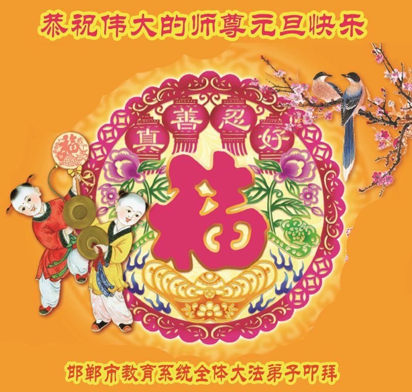 恭祝慈悲伟大的师父新年快乐! 唐山教育系统的大法弟子敬上 二零二一年十二月二十一日 河北省邯郸市教育系统全体大法弟子恭祝伟大的师尊元旦快乐!
