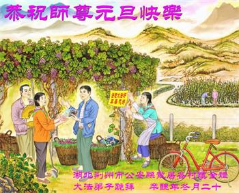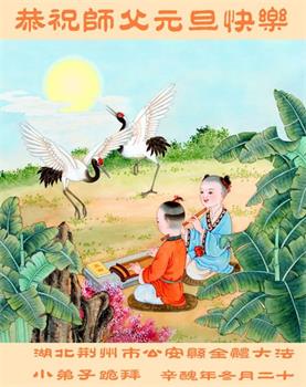 湖北省荆门市一学法小组全体大法弟子恭祝师父新年快乐!