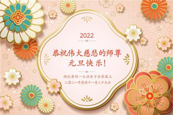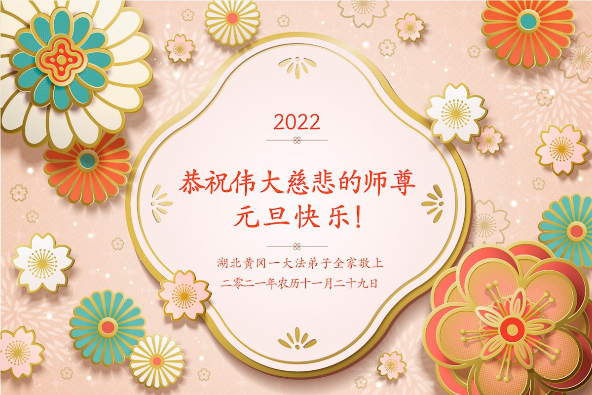 在师父的洪恩浩荡下,弟子们即将迎来开功开悟的时刻,那将是真正的大法弟子真正的大圆满!弟子们期待着当面向师父祝贺元旦快乐! 谢谢师父! 湖北一学法小组大法弟子敬上 二零二一年十二月二十九日 湖北武汉市洪山区全体大法弟子恭祝悲慈伟大的师尊新年快乐!