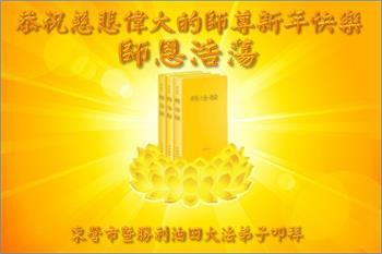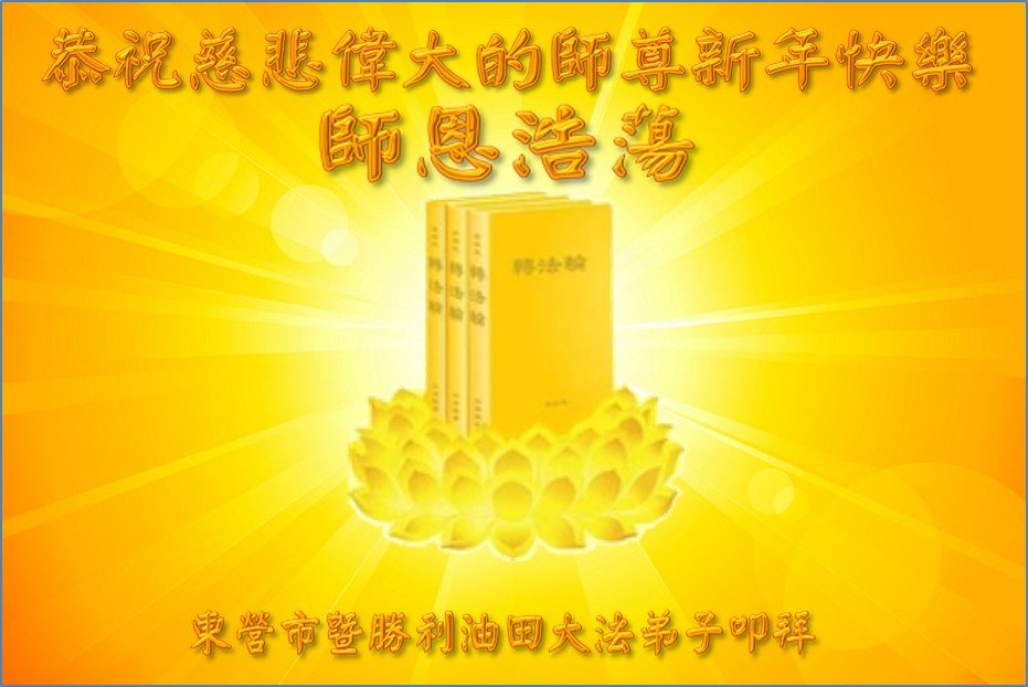 感恩师尊的慈悲救度!大法给了我们一个健康的身体,也让我们变成了一个做事能为别人着想的讲道德的好人。身处乱世中,有大法指导,我们心明眼亮不迷航。牢记师尊教诲,善待众生,做一个无私无我的人,紧跟师父走到底。 山东烟台招远一企业退休大法弟子恭祝慈悲伟大的师父新年快乐!