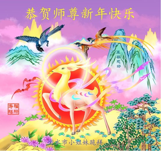 辽宁省抚顺市新宾县明真相世人恭祝慈悲伟大的李大师新年快乐! 辽宁省抚顺市新宾县明真相世人及家人叩拜 山东省威海乳山市全体大法弟子携亲人恭祝师尊新年好!