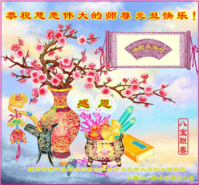 师父您辛苦了,盼师父早日回国! 辽宁省朝阳市建平县母女三位大法弟子及支持大法的小妹恭祝师尊元旦快乐!