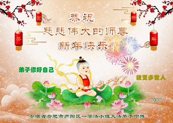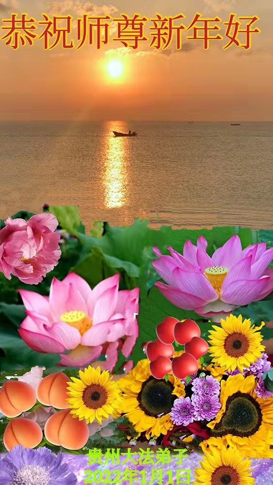 浙江省兰溪市多位大法弟子恭祝慈悲伟大的师尊新年快乐!海南大法弟子恭祝慈悲伟大的师尊新年快乐!云南昆明大法弟子恭祝师父新年快乐!谢谢师父慈悲苦度! 尊敬的师父:首先祝您新年快乐! 我是在那年春暖花开的时候走進大法修炼的,在您的保护下,走过了二十二年的严寒酷暑。如今迎来了法正天体结束的辉煌时刻,我是最幸运的生命,在此谢谢您的慈悲救度!在未来的日子里,我要学好法,走正修炼的路,兑现史前的誓约,做一个让众神都羡慕的随师法正人间的大法徒。 云南昆明一大法弟子敬贺! 新疆大法弟子恭祝慈悲伟大的师父新年快乐!慈悲伟大的师尊好! 在慈悲伟大的师父的保护下,弟子又走过的这不凡的一年。弟子坚信师父、坚修大法的心如金刚。弟子会抓紧这最后宝贵的时间,修好自己,尽力救人,走好走正修炼的路,跟师父回家。 内蒙古赤峰市大法弟子恭祝师尊新年快乐!师尊您好!我是赤峰市红山区大法弟子,在新年到来之际,弟子遥拜师尊,祝师尊新年快乐! 弟子一直没见过您,每当逢年过节,弟子都格外想念您,盼望与师尊见面的那一天能早日到来。在二十多年的打压凄风苦雨中,赤峰市一直是很严重的,弟子按照您的要求,努力做好三件事,不虚度每一天,尽量保持修炼如初的状态。回想走过的路,您对弟子的保护与点化是无法用语言表达的!是您加持了弟子、成就了弟子,您给了弟子一切,使弟子能够不断成熟,心性在大法中不断提升。 再次向师尊叩拜!合十。 福建福州鼓楼区三人学法小组大法弟子恭祝师尊元旦快乐!广西大法弟子恭祝慈悲伟大的师尊新年快乐!广西博白县大法弟子恭祝师尊新年好!福建平潭全体大法弟子恭祝师尊元旦快乐!师尊辛苦了!因为之前对法认识的不足,我们历经了许多坎坷。而如今在师尊的慈悲加持与我们每位大法弟子的日益成熟下,我们明白了修炼的严肃和重要性,都下定决心好好修炼,感到新的一年充满希望,正法洪势将势如破竹!我们要共同精進,找回曾经落下的大法弟子,尽快开创出平潭地区良好的修炼环境,救度因我们没修好而尚未得救的众生。 谢谢师尊! 浙江临海市全体大法弟子恭祝慈悲伟大的师尊新年快乐!伟大的师尊您辛苦了! 请师尊放心,我们在新的一年里,定会踏踏实实地做好三件事,抓紧救度更多的众生,整体提高、整体升华,稳键的走好最后证实法的路,比学比修。珍惜这瞬间即逝的万古机缘,定不辜负师尊的慈悲苦度。 重庆璧山区一大法弟子全家恭祝师父新年快乐!师父辛苦了!黑龙江省齐齐哈尔市碾子山区一大法弟子恭祝师尊新年快乐!弟子的每一步提高都离不开师尊的慈悲保护,在此叩谢师尊的慈悲救度!师尊您辛苦了!我们唯有多学法,炼好功,多救人,兑现史前的誓约,让师父多一些欣慰! 海南三亚一大法弟子恭祝师尊新年快乐!天津市三个学法小组大法弟子恭祝慈悲伟大的师尊新年快乐!恭祝慈悲伟大的师尊新年快乐! 在2022年新年即将到来之际,天津市三个学法小组大法弟子恭祝慈悲伟大的师尊新年快乐! 弟子们谨记师尊法中要求的做好三件事,按照修炼人的行为标准做事,多救人,向法正人间时期多救人,走好以后助师正法的路,不辜负师尊的慈悲苦度! 天津市大法弟子叩拜师尊 2021年12月14日 甘肃省兰州市城关一五人学法小组全体大法弟子跪拜慈悲伟大的师尊新年好!慈悲伟大的师尊在巨难中牵着弟子们的手历经千难万险,在师尊的慈悲点悟下使弟子们去除了许多种种人心,坚定走在返本归真的回归途中。弟子们会真正在精進实修中踏踏实实,实修自己,要多学法溶于法中,在法中归正自己,直至达到圆满。 跪迎师尊的归来,圆满随师还。弟子惟愿师尊笑! 兰州市城关区一五人学法小组的全体大法弟子敬上 甘肃兰州榆中县一大法弟子恭祝师尊元旦快乐!