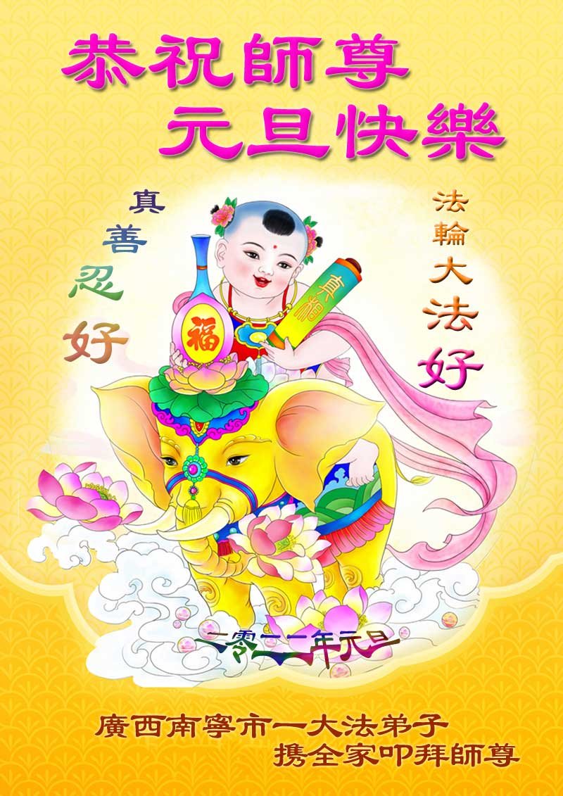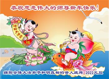 师父您好!师父您真的太辛苦了! 我们从开始懵懵懂懂的感知,到如今明明白白的清醒理悟: 师父为整个苍穹天体体系的众神众生承担了所有的罪债,才能使众神众生在最后的毁灭前得到大法的救度! 师父的洪恩浩荡,是所有天体众神众生永永远远都铭记在心中的! 师父的大慈大悲,是所有宇宙体系众神众生都永永远远赞唱歌颂的! 没有师父的救度,就没有大法; 没有大法的救度,就没有无量的宇宙和众神众生! 永远的感恩师尊!永远的紧随师父!永远的保卫新宇宙!这是新的誓约! 甘肃榆中县一大法弟子叩拜师尊 二零二一年十二月二十八日 广西壮族自治区南宁市一大法弟子全家恭祝慈悲伟大的师尊元旦快乐!师尊您好!师尊辛苦了! 师尊啊师尊,弟子会紧跟师尊的正法進程,继续努力做好三件事,向内修,快救人、多救人,勇猛精進,完成使命,决不辜负师尊慈悲苦度。愿师尊多一份欣慰,少一分操劳!谢师恩! 广西壮族自治区南宁市一大法弟子全家叩拜师尊!合十 上海浦东新区一学法小组大法弟子恭祝师尊新年快乐!我们浦东新区一学法小组大法弟子在新的一年到来之际问候师尊新年快乐! 我们无比想念成就我们的师尊!我们要以自己的努力修炼,救度更多的世人,在法正人间到来之时,以全新的状态来迎接我们的师尊回大陆! 广东惠州、深圳大法弟子恭祝伟大的师尊新年快乐!又一年过去了,弟子们无比感恩师尊的救度。在新的一年里,我们将继续做好师尊嘱托的三件事,兑现史前的誓约。 河北石家庄青年大法弟子祝师父新年好!新一年里,弟子一定不懈怠,抓紧实修,做好师父让做的三件事。谢谢师父的慈悲救度,感恩师父! 湖南湘潭科技大学大法弟子恭祝慈悲伟大的师尊新年快乐!吉林省延边州延吉市各学法小组大法弟子恭祝师尊新年快乐!在新年来临之际,延吉市各学法小组大法弟子恭祝师尊新年快乐!感恩师尊慈悲救度! 在正法最后时期我们一定放下自我圆容师父所要的,认真做好三件事,愿师尊少一份辛劳,多一份欣慰。 叩拜师尊! 湖北黄冈武穴市六位大法弟子及家人恭祝师尊新年好!无论怎样的艰难环境中,弟子们都时刻感受的到师尊的救护和保护。无论用什么样的语言也无法表达对师尊的感恩,唯有做好三件事,不断提高心性,精進,再精進! 山东省菏泽市曹县母女俩大法弟子恭祝师尊新年快乐!恭祝师尊新年快乐! 千言万语感激不尽师尊对弟子的慈悲救度,谢谢师尊把我们从地狱里捞起洗净,重塑,给予我们重生。在这辞旧迎新的日子里,恭祝师尊新年快乐! 师尊辛苦了!谢谢师尊! 弟子叩拜 山东曹县母女俩大法弟子敬上 四川绵阳全体大法弟子和明真相世人恭祝师尊新年快乐!辽宁省抚顺市一大法弟子恭祝师尊新年好!感谢师尊慈悲救度!弟子要学好法,修好自己,做好三件事,多救人,圆满随师还。 安徽省合肥市庐阳区一学法小组大法弟子恭祝慈悲伟大的师尊新年快乐!感恩师尊慈悲救度!弟子一定会努力做好三件事,不辜负恩师慈悲苦度,学好法,修好自己,多救人,圆满随师还,谢谢师父!
