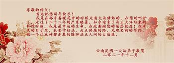 在此与家人恭祝慈悲伟大的师父二零二二年元旦快乐! 弟子跪拜师尊! 二零二一年十二月六日 黑龙江省逊克县大法弟子恭贺慈悲伟大的师尊过年好!弟子们一定走好、走正师尊用巨大承受为我们延续来的宝贵时间、给我们铺垫好的伟大的神佛之路。毫厘不走偏、不迷失。牢记师父的教诲,越最后越精進、越学好法、正念越足,决不懈怠、不消沉、不懦弱。完成使命,兑现誓约。愿无量无计的万物众生与有缘的公检法司的警察、法官们都得救,走向美好的未来!唯愿师尊笑。 全县大法弟子及全县得救的众生们叩谢师恩!合十! 青海省海西州格尔木市全体大法弟子恭祝慈悲伟大的师尊新年快乐!我们想念师父! 宁夏银川市兴庆区一家大法弟子恭祝师尊新年快乐!时间匆匆又一年, 学法救人更紧迫, 明悟去执法上修, 正念正行大法徒, 师尊教诲牢记心, 多向新宇救生命。重庆市九龙坡区一大法弟子敬祝慈悲伟大的师尊新年快乐!新年来临之时,叩拜师尊救度之恩。 今年八月之初,我和同修在回家途中险遇车祸,差一点摔下深渊。危难之中,幸好有师父看护,获得了第二次生命。千恩万谢也无法表达对师父的感恩。 在这剩下不多的时间里,我一定要修好自己,做好三件事,多救人,决不辜负师父的慈悲救度,做一个合格的大法弟子,随师父回家。 弟子叩拜慈悲伟大的师尊 新疆维吾尔自治区昌吉州阜康市大法弟子恭贺慈悲伟大的师尊元旦快乐!河南濮阳地区中原油田全家大法弟子恭祝师尊新年好!岁月如风,转眼既是2022新年到来了,回想过去一年的经历,让师尊费了多少心,慈悲的看护,无尽的操心,为了弟子的提高,时时刻刻的保护,回过头来,才感受到佛恩浩荡!师尊的苦心!一路跌跌撞撞,在迷的尘世中,我渐渐的成熟,师尊辛苦了! 值此新年之际,全家大法弟子跪叩:师尊新年好!师尊新年愉快!弟子们一定精進实修!不负师尊的苦心救度! 河南濮阳地区中原油田全家大法弟子跪拜! 2021年12月22日 江苏南京新区江北、六合区、大厂区全体大法弟子恭贺师尊元旦快乐!弟子们一定学好法,救度众生,走好修炼的路。请师尊放心,弟子们一定信师信法,跟随师尊走到底! 山西省晋中市太谷区大法弟子恭祝慈悲伟大的师尊新年好!感恩伟大的师尊在这末劫之时慈悲救度我们于业浪滚滚的毒世之中!系统缜密的安排了我们回归修炼的路,赋予我们连神都羡慕的“正法时期大法弟子”的殊胜的名称!时时事事在保护着我们,每一次遇到危难时,只要坚定的信师信法,都是有惊无险的平安走过! 弟子叩拜师恩!唯有学好法,修好自己,讲真相救众生,完成自己的使命,兑现下世的洪誓大愿,才不负浩荡佛恩,圆满随师回归! 山西省晋中市太谷区大法弟子叩拜! 陕西省宝鸡市大法弟子母子恭祝慈悲伟大的师尊元旦快乐!随师正法,无上荣耀。感谢师尊把宇宙大法传给众生,感谢师尊的慈悲救度。能够成为您的弟子,我们感到自己是这世上最幸福的生命。最后的时刻,我们一定会多学法,向内找,和同修多圆容配合好,救度更多的众生,完成自己的使命。 贵州大法弟子恭祝师父新年快乐!新的一年就要到了,弟子恭祝师父新年快乐! 在浩瀚的宇宙中, 是您为弟子铺就回天路! 是您在高高的山岗上, 召唤迷失的众生赶快回归! 是您在波涛汹涌之中, 用法船载众生乘风破浪, 把众生度到幸福的彼岸! 您把慈悲送给每一个生命, 宇宙中一切沐浴着您的洪恩! 师父啊师父!我们好荣幸! 跟着您走过数不清的岁月, 穿越了层层天宇, 见证着您的无边法力, 承蒙着您的无量洪恩。 在这末劫的最后时刻, 我们更加坚信法正乾坤! 无论时日还有多久, 正法必成,新宇诞生! |