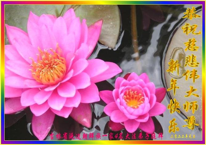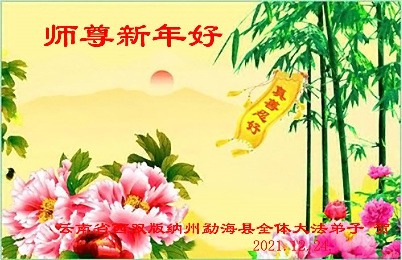 | 【明慧网二零二一年十二月三十一日】从北疆边陲,到南国少数民族聚居地,法轮大法传遍中国大陆各地区。二零二二年新年到来之际,明慧网收到来自朝鲜族、满族、蒙古族、壮族、回族、维吾尔族以及中国大陆北部边陲、大山深处、云南最南端居住的大法弟子们对师父的节日问候,感恩师尊的慈悲救度。 宁夏回族、汉族全体大法弟子恭祝师父新年快乐!大法弟子们表示:在新的一年里我们将会尽自己的最大努力做好大法弟子的“三件事”,相互协调配合好,在神的路上正念正行,走好最后的路。请师父放心。 广西大法弟子叩谢恩师,并敬献小诗一首:橙甜润肺腑,春临万物苏,正法洪势近,壮乡鸣金鼓! 延边自治州朝鲜族大法弟子表示:我一定无论到哪也不辜负师尊的慈悲救度之恩,不负众生,兑现誓约,一定不懈怠。 吉林省延边朝鲜族五名老年大法弟子恭祝师尊新年快乐!黑龙江省五常市拉林镇大法弟子恭祝师尊新年快乐!五常市拉林镇大法弟子在边远小镇遥祝慈悲伟大的师尊新年快乐!谢谢师尊的救度与保护!师尊您辛苦了! 云南省西双版纳州勐海县全体大法弟子恭祝师尊新年好!北京少数民族大法弟子恭祝师尊新年快乐!辽宁省营口市少数民族五姐弟恭祝师父新年好!我们感恩师父的慈悲苦度! 吉林省延边朝鲜族自治州延吉市一学法小组大法弟子恭祝慈悲伟大的师尊新年快乐!内蒙古鄂伦春旗甘河镇全体大法弟子恭祝慈悲伟大的师尊元旦快乐!师父您辛苦了!感恩师父慈悲救度! 全体大法弟子合十叩拜! 莫旗大法弟子恭祝伟大的师尊新年快乐!内蒙古蒙古族大法弟子们恭祝师父新年好!慈悲的师父好! 内蒙古蒙古族大法弟子们恭祝师父新年好! 遥寄弟子们的新年祝福,表达弟子们的感恩。谢谢慈悲的师父把我们救度。 叩首合十 2021年12月19日 吉林省延边朝鲜自治州大法弟子恭祝师尊新年快乐!宁夏回族自治区回、汉族全体大法弟子恭祝师父新年快乐!我们一定要学好法,修去一切人心执着。我们一定要珍惜师尊用巨大的承受与付出延长来的时间多救人,跟随师父圆满返回家园。谢谢师尊! 师父:在新的一年里我们将会尽自己的最大努力做好大法弟子的“三件事”,相互协调配合好,整体升华,整体提高,在神的路上正念正行,走好最后的路,同时不断提高自己的心性,正念正行抓紧时间、加大力度讲清真相,救度世人,兑现历史赋予我们的责任和使命。请师父放心。 广西壮族自治区大法弟子恭祝慈悲伟大的师尊二零二二年元旦快乐!橙甜润肺腑 春临万物苏 正法洪势近 壮乡鸣金鼓壮乡弟子叩谢恩师! 吉林省延边朝鲜族一家四名大法弟子恭祝师尊新年快乐!弟子会牢记自己使命!谢谢师尊慈悲救度! 中国大陆全体朝鲜族大法弟子恭祝师尊新年好!朝鲜族姐妹大法弟子恭祝师尊新年快乐!我们要珍惜修炼机缘,努力完成使命。 朝鲜族大法弟子一家恭祝师尊新年快乐!感恩师尊救度!我们家的小宝宝两次发高烧昏迷后,是师尊救了孩子的命,小宝宝也开始跟着大人学法。感谢师尊洪传大法,让迷中的我们找到了生命的希望。 新疆维吾尔自治区昌吉州大法弟子恭贺慈悲伟大的师尊元旦快乐!内蒙古莫力达瓦达斡尔族自治旗一家族大法弟子恭祝师父新年快乐!吉林省延边自治州龙井市朝鲜族大法弟子恭祝伟大慈悲的师尊新年快乐!又一新年即将来到了,弟子很想念师尊!您辛苦了! 我一定无论到哪也不辜负师尊的慈悲救度之恩,不负众生,兑现誓约,一定不懈怠,在自己的环境中更加精進,修去自己的各种执着心,正念正行,为做一个合格的正法时期大法弟子而努力。 延边自治州龙井市朝鲜族大法弟子 吉林省延边朝鲜族一学法小组大法弟子恭祝师尊新年快乐!我们学法小组大法弟子们感恩师尊的无量慈悲!是师尊的看护,我们才能走到今天。用尽人类所有语言也无法表达对师父慈悲救度的感恩。 新年即将来临之际,弟子们恭祝慈悲伟大师尊新年快乐!谢谢师父! 弟子跪拜 吉林省伊通满族自治县一乡镇大法弟子恭祝师尊新年好!恭祝慈悲伟大的师尊新年快乐! 弟子感恩师父慈悲救度,师父您辛苦了,谢谢师父! 弟子一定认真学法,修好自己,多救人。 吉林省伊通满族自治县一乡镇大法弟子敬上 二零二二年元旦 内蒙古锡林郭勒盟多伦县一学法小组大法弟子恭祝师尊新年好!内蒙古自治区锡林郭勒盟多伦县一学法小组大法弟子恭祝慈悲伟大的师尊新年好!新年快乐! 我们非常想念师父,衷心的祝福我们伟大的师尊新年快乐!慈悲伟大的师尊您辛苦了!您为弟子为众生巨大的付出与承受,对师父的感恩无以言表。我们会更加坚定正念,做好“三件事”,多救人,用法赋予的智慧多唤醒世人。 叩拜师尊! 北京市少数民族大法弟子恭祝师父新年快乐!师父辛苦了! 新的一年又要开始了。在随师法正人间的路上,无论何时何地,弟子一定做好三件事,走好最后的路。 北京大法弟子合十敬上 内蒙古鄂伦春旗克一河镇大法弟子恭贺伟大的师尊元旦快乐!弟子一定要多学法、学好法、做好三件事、多救人、完成使命。感恩师尊! 叩拜师尊! 吉林省延边朝鲜族自治州大法弟子和家人及得救亲朋好友恭祝师尊新年快乐!吉林省延边朝鲜族自治州大法弟子和家人及得救亲朋好友恭祝师尊新年快乐! 感恩师尊慈悲救度与救命之恩!感谢师尊向世界传递真、善、忍,给我们的世界带来希望。 四川彭山区乡村全家大法弟子恭祝师