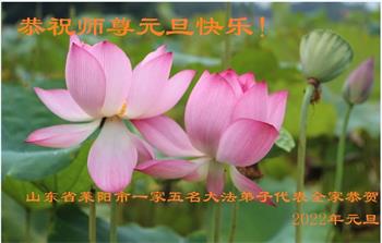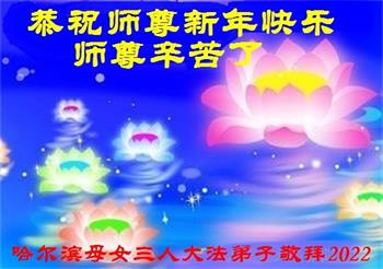 | 【明慧网二零二一年十二月三十一日】二零二二年元旦前夕,明慧网收到了来自中国各地大法弟子代表家族中多人、几代大法弟子敬献给师父的新年贺信,无限感恩师尊救度,恭贺师父元旦快乐! 山东临沂大法弟子一家五代人都修大法,其中最年长的今年九十九岁。一家人在给师父的贺信中说:“师尊时时看护着我们,随着心性的升华,一切都在往好的方向发展,越走路越宽!” 成都市一家祖孙三代大法弟子恭祝师父新年快乐!他们表示:“我们祖孙三代大法弟子跟随师父修炼已二十五年。在这段珍贵的岁月里,风风雨雨,我们已深刻体悟到这部宇宙大法的博大精深。师父的浩荡洪恩,才使众生有了这万古不遇、能進入新宇宙的得救机缘。弟子们无限感恩!” 辽宁葫芦岛一家人写道:“我们这个大家族中有多人修炼,都是老弟子。弟子们人人都从大法中受益良多,一直稳健的走在修炼救人之路上。家族中不修炼的人也都正念支持大法,感谢师父的慈悲救度!” 黑龙江省桦南县一家族五名大法弟子携带家人恭祝师尊元旦快乐!七十多岁的老母亲听说弟子们能亲自给师父发,内心激动不已。一再表示:感恩师父!感恩大法! 不识字的母亲每天看师父讲法录像,并积极努力按师父说的做好三件事。 目前,还没有正式走入修炼的弟弟、弟媳支持母亲修炼,也虔诚的相信法轮大法好!真善忍好! 安徽省淮南市一大家族老、少四代几十人恭祝慈悲伟大的师父新年快乐!我们大家族中,上有八十多岁的老翁,下有学龄前儿童,男女老少数十口人,无论身处何地、从事何种职业,都沐浴在慈悲伟大师父的洪恩浩荡中!我们感恩伟大师父的慈悲救度;感恩大法无边法力的保护。我们在大法中受益太多太多,对师父的感恩无以言表。 此时,千言万语凝聚成一句话:恭祝慈悲伟大的师父新年快乐! 山东临沂一大家族五代大法弟子恭祝师尊元旦快乐!我们家五代人同修大法,受益无穷,最年长的今年迈上九十九岁。师尊时时看护着我们,蘸尽黄河之水亦难表我们家族全体弟子对师尊的无尽感恩! 修炼前,家中多人病业极重,包括我自己自小就有十几种病。妈妈说我什么时候死就什么时候算吧。得到大法后,我们都很快康复。大法改变了我们大家族里所有亲人的命运。我们大家族的人分布在各个行业里,是早期在大法中受益的人。我们敬仰大法、敬仰伟大的师尊!随着心性的升华,一切都在往好的方向发展,越走路越宽! 我们知道,师父正法已经到了最后的最后,可现在还有千千万万的国人被中共邪*党-迷惑和欺骗着,他们正处在最危险的边缘。师尊让我们讲清真相,救度世人。师尊,您放心,我们永远不忘使命,一定抓紧时间讲真相救人。 我们大家族全体弟子在此叩谢师恩! 吉林省公主岭市母子大法弟子恭祝师尊新年快乐!浊世黑暗之中唯有法轮大法带给人们光明与希望。法轮大法好!真善忍好!感恩师尊的时时点悟与看护,我们一定会互相提醒,共同精進,完成好师尊要求的三件事。请师尊少些操劳。再次感谢师尊的慈悲救度! 吉林省公主岭市母子大法弟子 二零二二年新年敬贺 吉林省四平市大法弟子一家三代五口恭祝师尊新年好!谢谢师父救度之恩。小宇一家五口恭祝师父新年好!我是小宇,今年九岁,在大法中修炼一年多了。我心性提高了,身体好,学习好,还戒掉了手机瘾。我玩手机家里谁也管不了,师父管就好了。谢谢师父! 我的爷爷、奶奶、爸爸、妈妈和我一起恭祝师父新年好!盼着师父来我家。 辽宁省兴城某家族全体大法弟子恭祝伟大的师尊新年快乐!师尊您辛苦了! 我们家族全体弟子向伟大的师尊致以最崇高的敬意!作为神的使者,弟子们要勇猛精進,做好三件事,讲真相救度众生,完成自己下世时的承诺和责任。 辽宁兴城某家族全体大法弟子 二零二一年十二月二日 湖南省湘潭大法弟子代表全家族向慈悲伟大的师尊恭贺新年快乐!湘潭大法弟子代表全家族二十六人怀着感恩的心向慈悲伟大的师尊恭贺新年快乐! 谢谢师父慈悲救度与看护! 弟子跪拜慈悲伟大的师尊! 合十 黑龙江伊春市一家祖孙三代大法弟子恭祝师尊新年快乐!天灾人祸、世事纷争,大法弟子在这个乱象丛生的人世中、在大雪纷飞的严冬中迎来了新的一年。在新的一年里,我们要守住正念,做好三件事,跟随师父正法進程,完成大法弟子的使命。 黑龙江伊春市一家祖孙三代大法弟子敬上 湖南省邵东市大法弟子一家三代恭祝伟大的师父元旦快乐!师父啊!您给我们无价之宝“真、善、忍”大法,只有在实修中才能体悟到法的真谛和珍贵价值,弟子找不到人间的词句来形容,无以回报,只有精進,再精進! 四川省成都市东门一家祖孙三代大法弟子恭祝慈悲伟大的师父新年快乐!辞旧迎新,我们走过了不平凡的又一年,即将迎来师父用巨大付出而延续来的二零二二年。我们一家祖孙三代大法弟子满怀敬仰之心叩拜师父:“师父辛苦了!”“师父新年好!”我们祖孙三代大法弟子跟随师父修炼已二十五年。在这段珍贵的正法岁月里,风风雨雨,凭着对师父的坚信,对大法的坚信,我们本性的一面已深刻体悟到这部宇宙大法的博大精深,师父的浩荡洪恩,才使众生有了这万古不遇,能進入新宇宙的得救机缘。弟子们无限感恩!我们将一如既往做好“三件事”,以大法中修得的慈悲和正念唤醒世人,兑现我们的史前誓约。 师父,请接受弟子们再一次的深深感恩! 叩拜师尊!