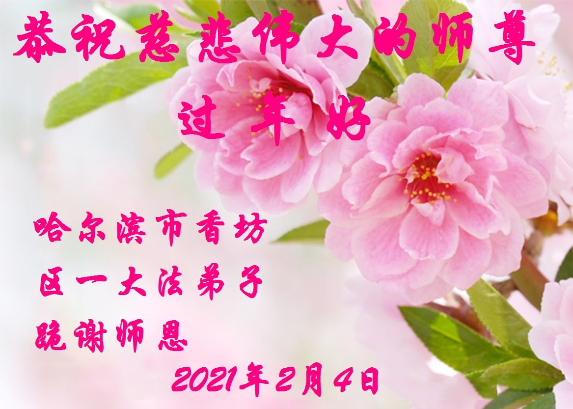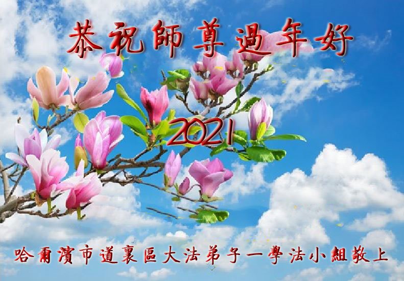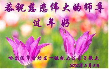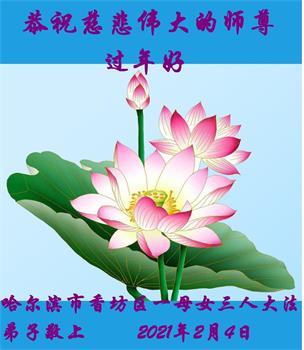 【明慧网二零二一年二月十日】 黑龙江省哈尔滨市香坊区一母女三人大法弟子恭祝慈悲伟大的师尊过年好!