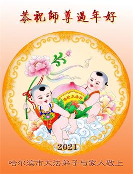 哈尔滨市大法弟子与家人敬上 黑龙江省哈尔滨市一大法弟子恭祝师尊过年好!