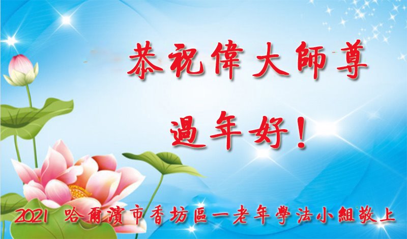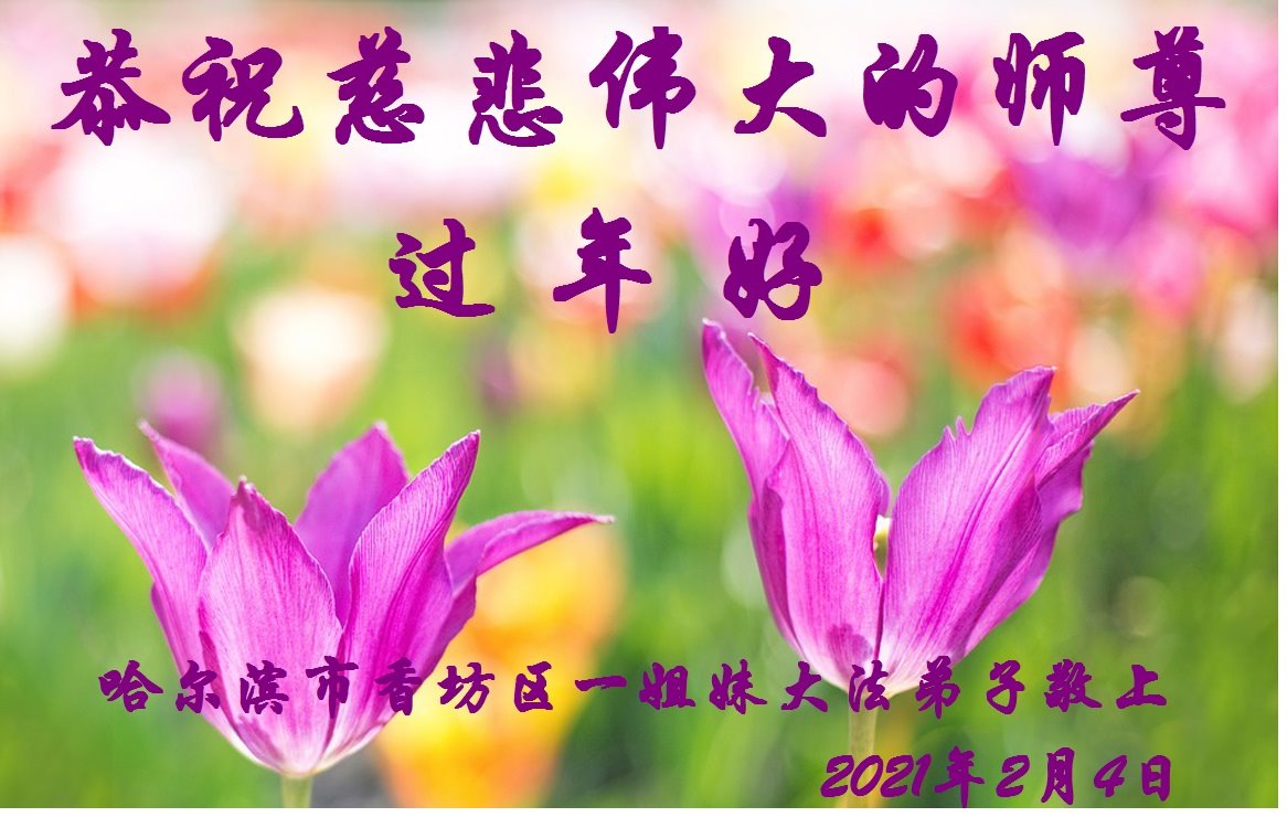 恭祝师尊过年好! 哈尔滨市一大法弟子敬上 黑龙江省哈尔滨市香坊区一老年学法小组大法弟子恭祝伟大的师尊过年好!