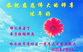 恭祝师尊过年好! 哈尔滨市一大法弟子敬上 黑龙江省哈尔滨市一大法弟子恭祝师尊过年好!