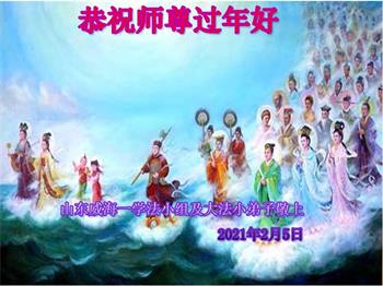 山东威海一学法小组大法弟子和大法小弟子恭祝师尊过年好!