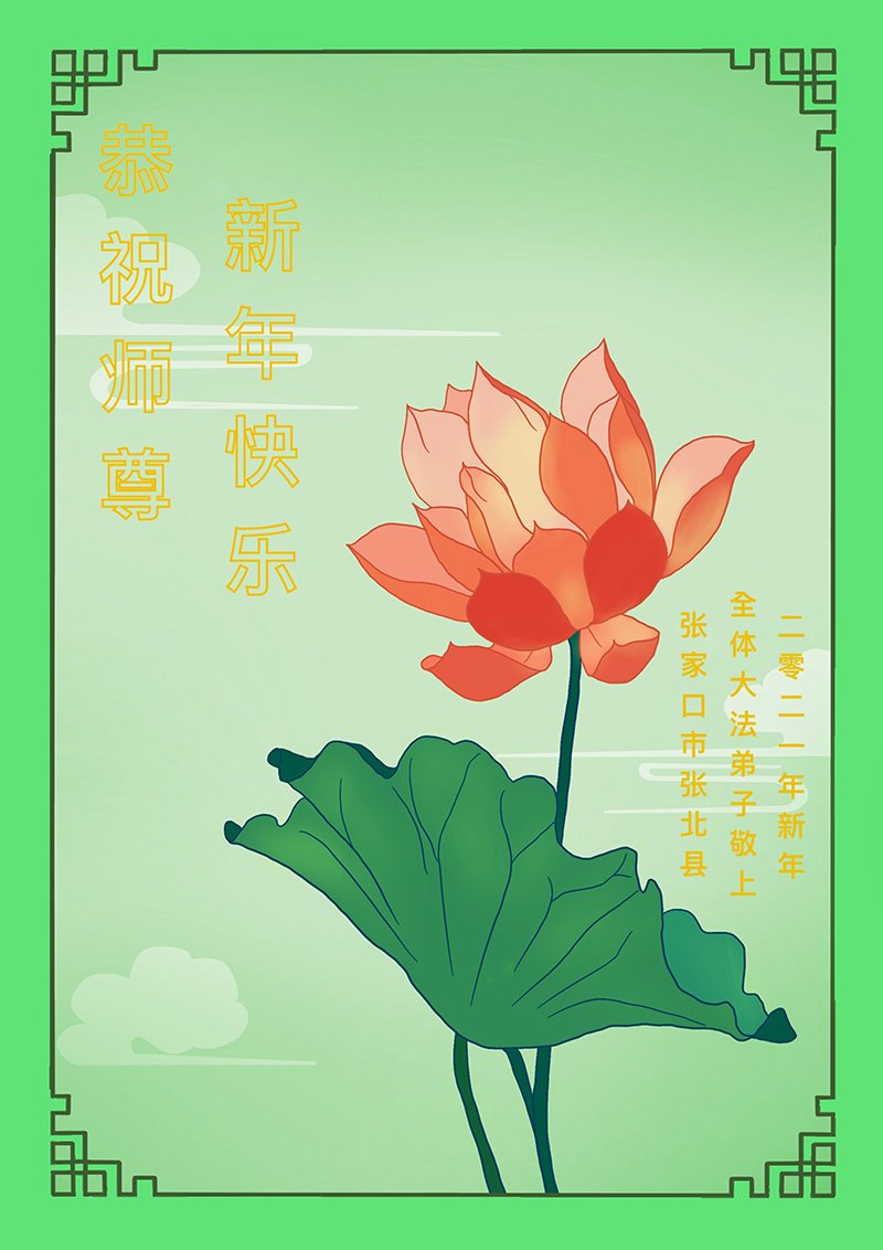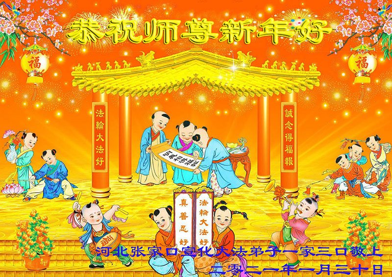 【明慧网二零二一年二月十日】 河北张家口市宣化区一家三口大法弟子恭祝慈悲伟大的师尊新年好!