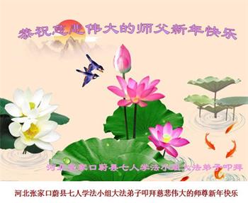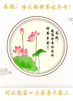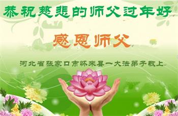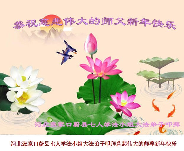 谢谢师尊对弟子们的慈悲保护、救度。我们一家一定要坚定的走好以后的修炼路,认真学法,努力的去掉执着,修好自己,做好三件事!不辜负师尊的慈悲苦度! 弟子一家叩拜恩师! 河北省张家口市宣化区一学法小组全体大法弟子恭祝师父新年快乐!
