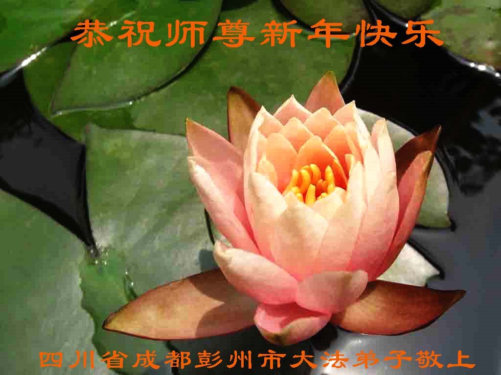 四川省成都彭州市大法弟子敬上 四川省成都彭州市一大法弟子恭祝慈悲伟大的师尊新年快乐!