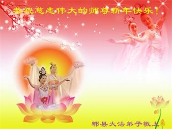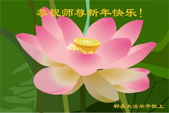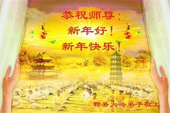 全家大法弟子向远在大洋彼岸而又时刻在我们身边的慈悲、伟大的师尊致以最诚挚的祝愿:师父过年好! 过去的岁月,是师尊洪大的慈悲,巨大付出为我们驱散迷雾,帮我们化解了一次又一次的磨难。在弟子需要帮助时,师尊给予最好的安排;在弟子迷茫时,师尊给予鼓励和点化;是师尊牵着弟子的手走出了迷茫,闯过了无数的艰难险阻。只有慈悲伟大的师尊珍惜弟子,只有师尊才能使我们回到真正的家园。感恩的泪水止不住的流淌,谢谢师尊!无论证实法的路还有多长,弟子一家一定会坚定的走到最后,迎接法正人间的到来。 叩拜师尊! 四川省成都新津区全体大法弟子恭祝师尊过年好!师父您辛苦了!