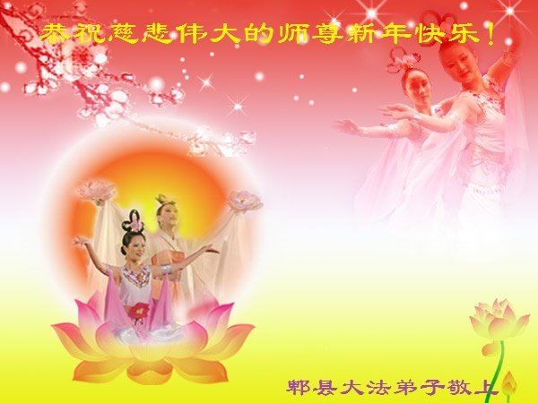 四川省成都市郫县大法弟子恭祝慈悲伟大的师尊新年快乐!
