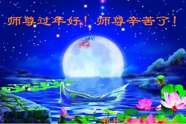 恭祝慈悲伟大的师尊过年好! 师尊好!法轮大法好!真善忍好! 谢谢师尊慈悲救度! 成都北门一大法弟子跪拜 四川省成都市犀浦大法弟子恭祝师尊过年好!