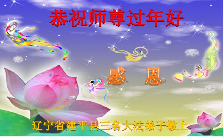 在新的一年里,我们要加紧做好三件事。学好法,修好自己;发好正念,除尽邪恶;讲清真相,救度更多的众生。 辽宁省朝阳全体大法弟子恭祝慈悲伟大的师父过年好!