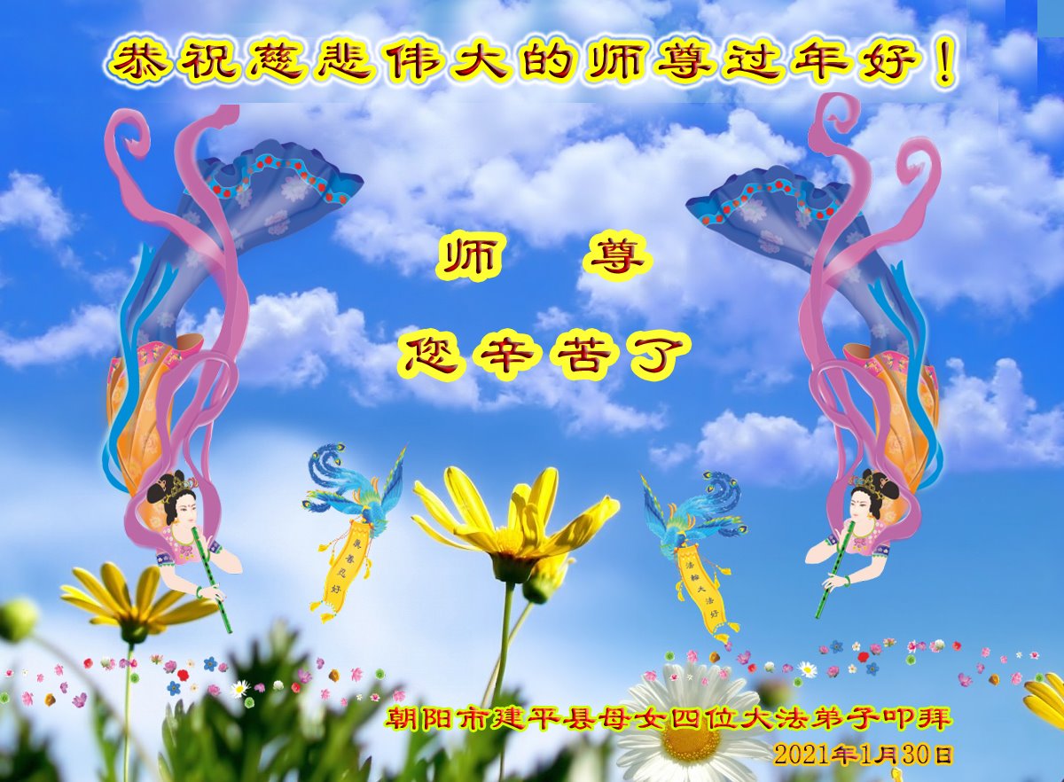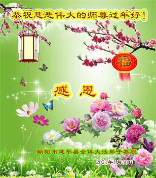 【明慧网二零二一年二月十日】 辽宁省朝阳市建平县全体大法弟子恭祝慈悲伟大的师尊过年好!