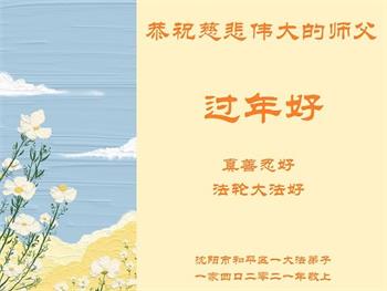师尊过年好! 本溪住辽宁省沈阳一家全体大法弟子恭祝师尊新年快乐!叩拜恩师!师父辛苦了!