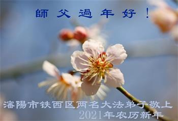 【明慧网二零二一年二月十日】 辽宁省沈阳市一老年学法小组大法弟子恭祝慈悲伟大的师尊过年好!