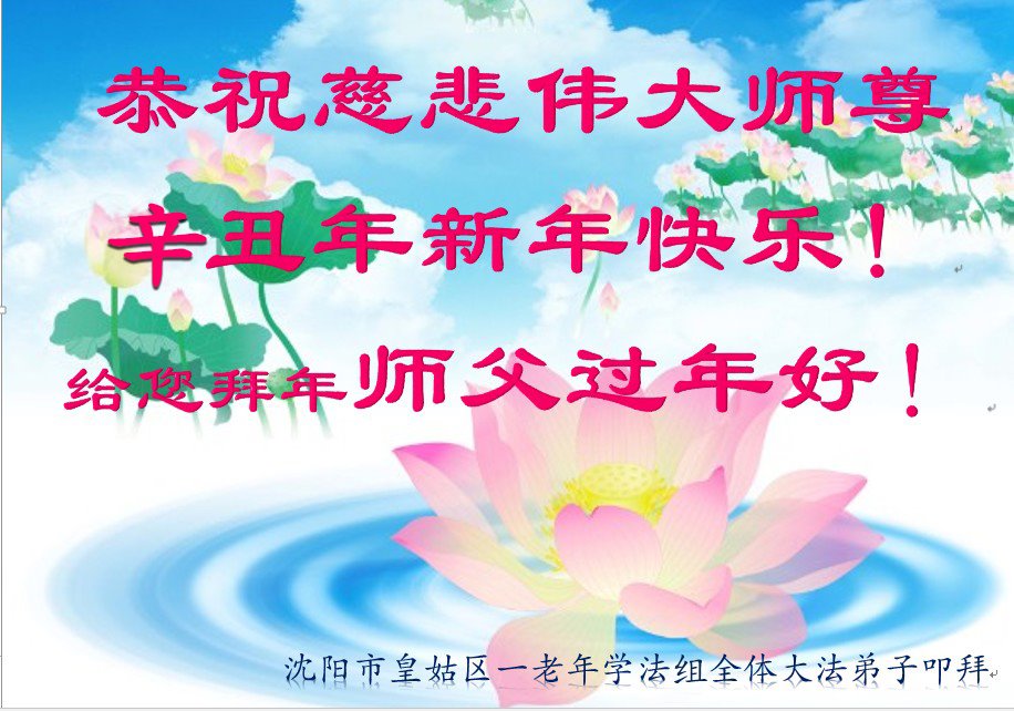 恭祝慈悲伟大的师尊辛丑年新年快乐!给您拜年:师父过年好! 沈阳市皇姑区一老年学法小组全体大法弟子叩拜 辽宁省沈阳市一老年学法小组大法弟子恭祝师尊过年好!