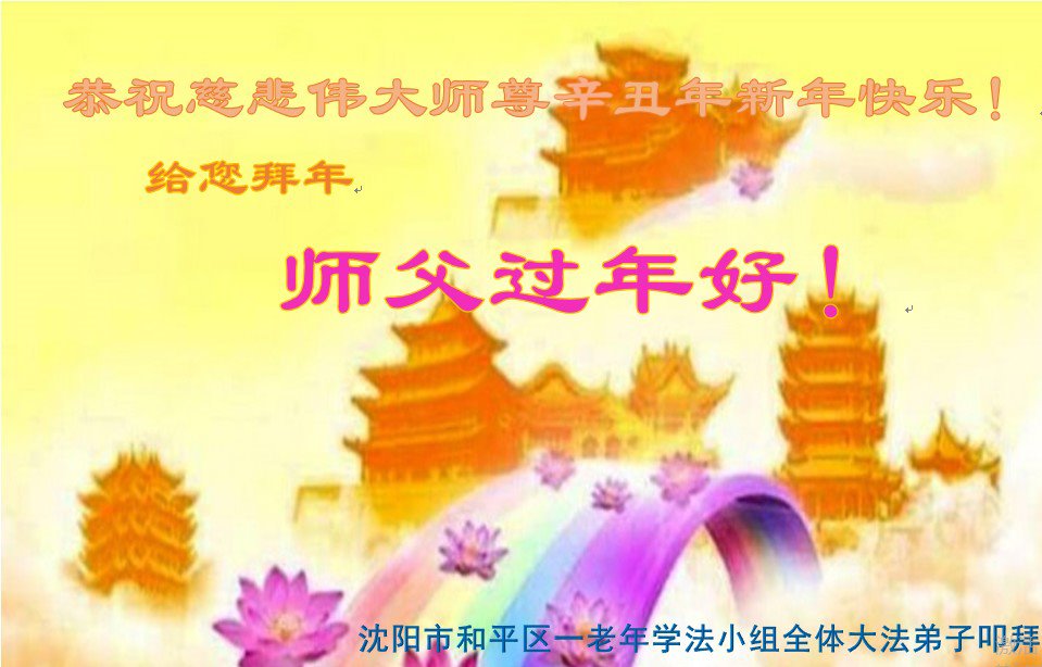 恭祝慈悲伟大的师尊辛丑年新年快乐!给您拜年:师父过年好! 沈阳市和平区一老年学法小组全体大法弟子叩拜 辽宁省沈阳市大法弟子恭祝慈悲伟大的师尊过年好!