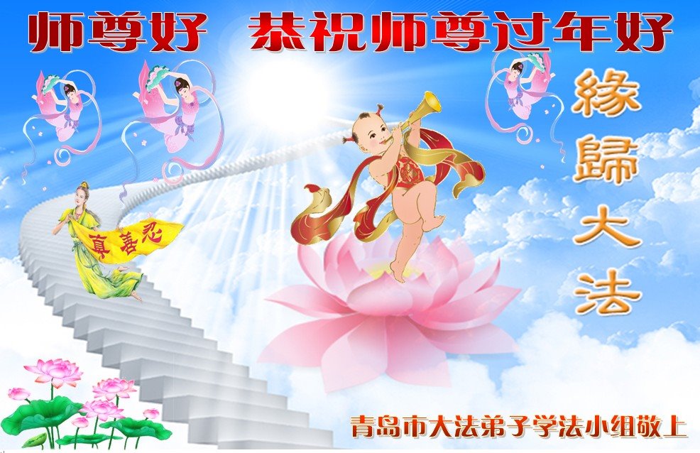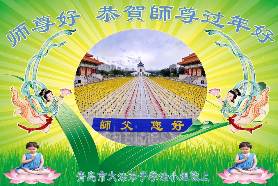师尊好!恭祝师尊过年好! 青岛市大法弟子学法小组敬上 山东省青岛大法弟子恭祝师尊过年好!