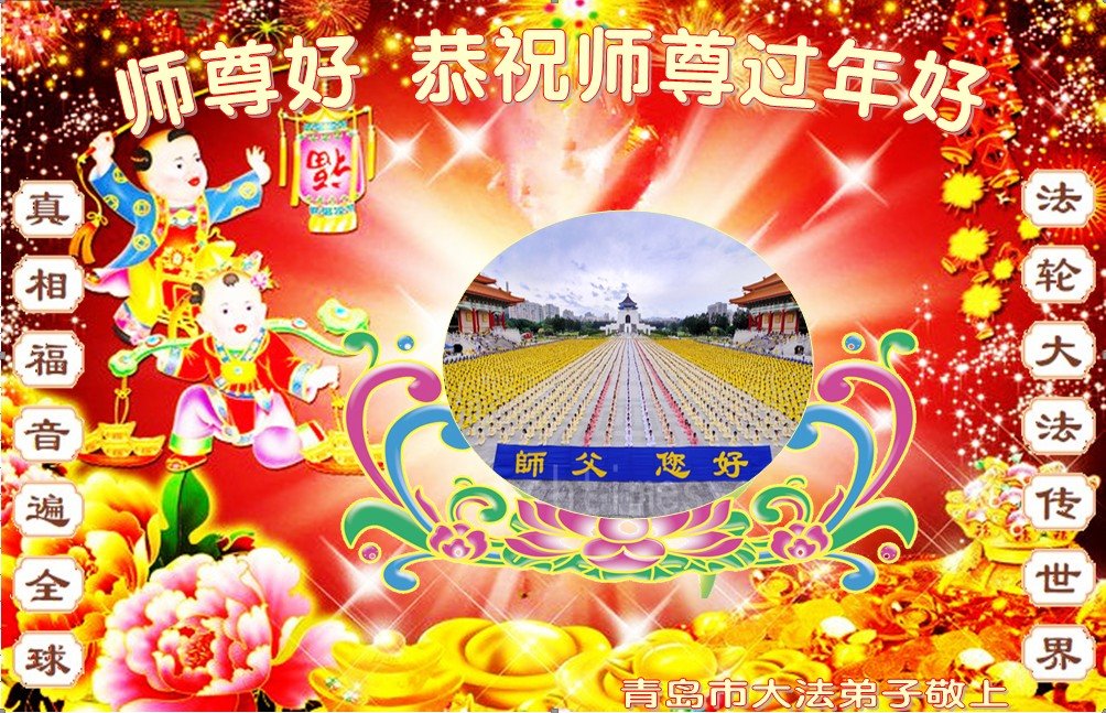 师尊好!恭祝师尊过年好! 青岛市大法弟子敬上 山东省青岛大法弟子给师尊拜年:师父过年好!