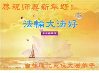 师尊好!法轮大法好!真善忍好! 牢记师尊的话:“大法弟子已经成为众生得救的仅有的唯一希望”(《精進要旨三》〈正念〉)。 吉林省通化市五位大法弟子恭祝师尊新年好!