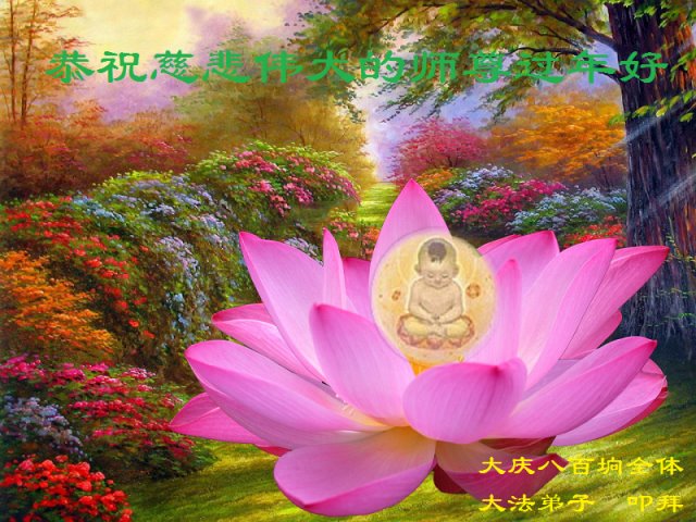 黑龙江省大庆某楼区的大法弟子给师尊拜年恭祝慈悲伟大的师尊新年快乐!