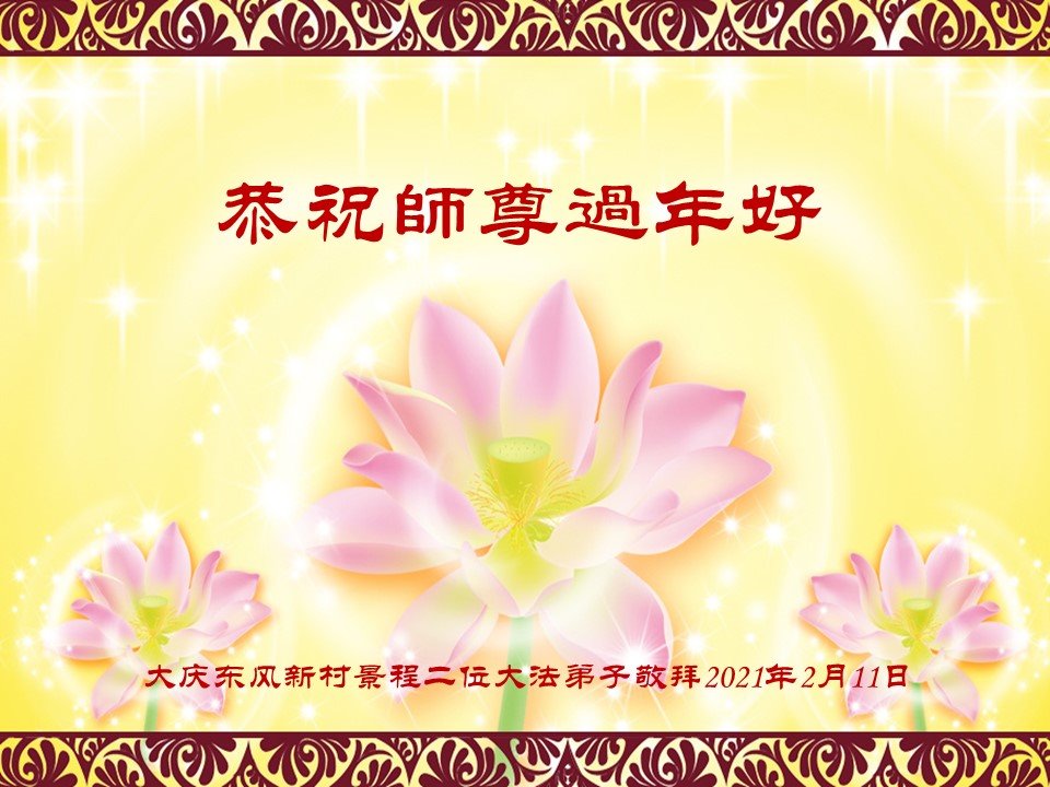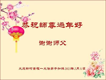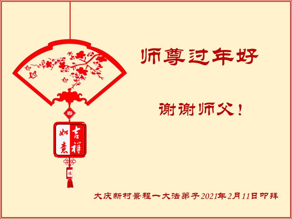 【明慧网二零二一年二月十日】 黑龙江省大庆东风新村景程一大法弟子恭祝师尊过年好!