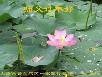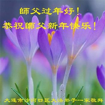 辽宁大连市沙河口区一大法弟子一家恭祝师父新年好!