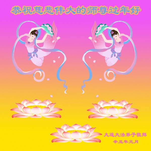 【明慧网二零二一年二月十日】 辽宁省大连市甘井子区一大法弟子恭祝慈悲伟大的师尊新年快乐!